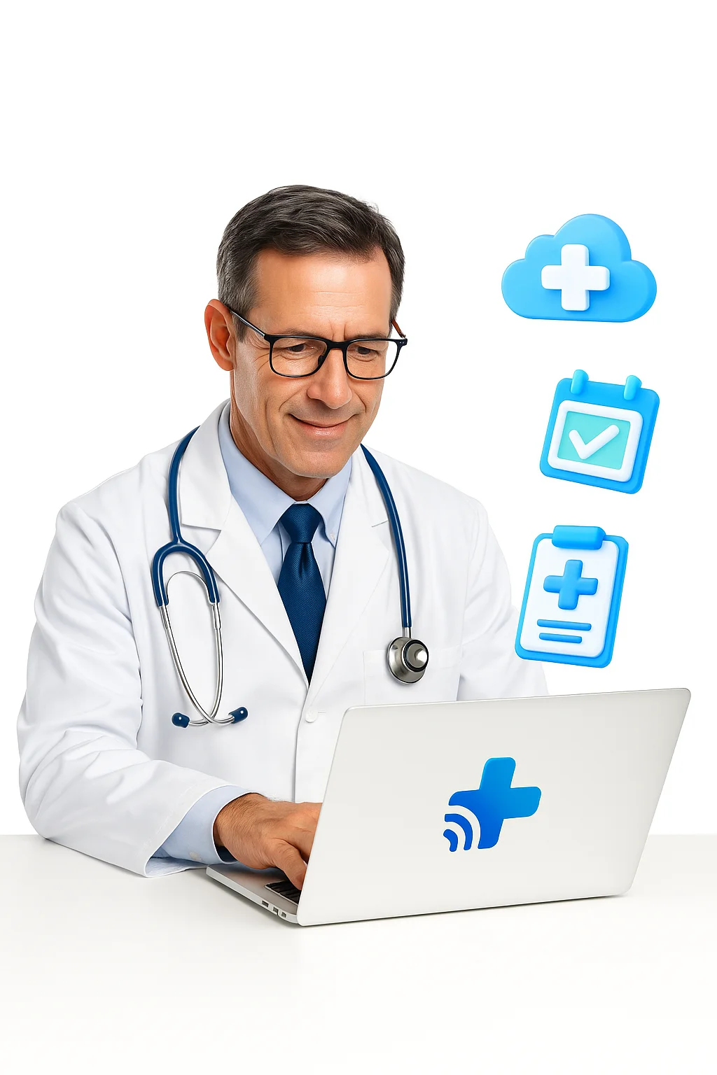 Conectamos a hospitales, médicos y centros de diagnóstico en una sola plataforma digital segura y eficiente.